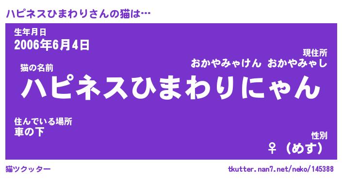 | 生年月日? …「くろねこ」 | 8月01日 10:16 |