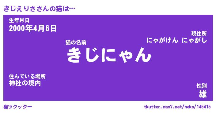| 男性向けラノベタイトル風あだ名 | 『きじえりさの憂鬱』 |