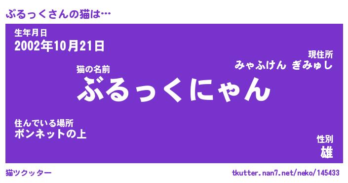 | 男性向けラノベタイトル風あだ名 | 『ぶるっくの憂鬱』 |