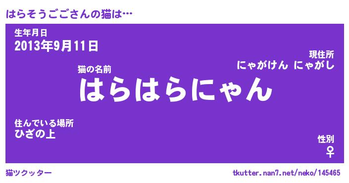 | 生年月日? …「くろねこ」 | 8月01日 10:16 |