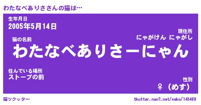 | 2回繰り返すあだ名 | 『わたわた』『わわたた』『にたにた』 |