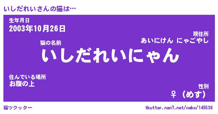 | ファンタジー風あだ名 | 『イシフェル』『エターナルイシダレイー』 |