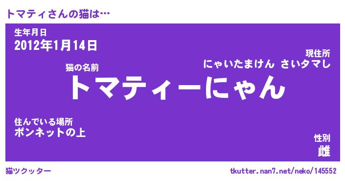 | 自動車の名前っぽいあだ名 | 『トマティマ』『トスラー』 |