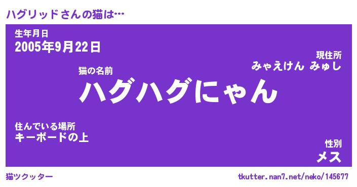 | ファンタジー風あだ名 | 『ハグフェル』『エターナルハグリッドー』 |