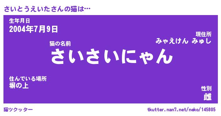 | ポケモン風あだ名 | 『サイチュウ』『サイトダネ』 |