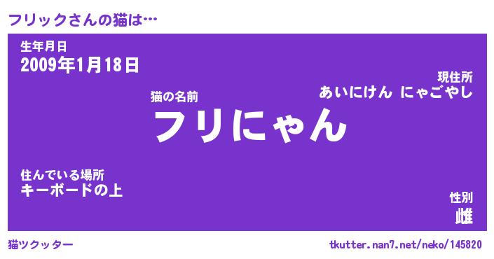 | 意味不明あだ名 | 『ペロリンフリック』『永久保存フリック』 |