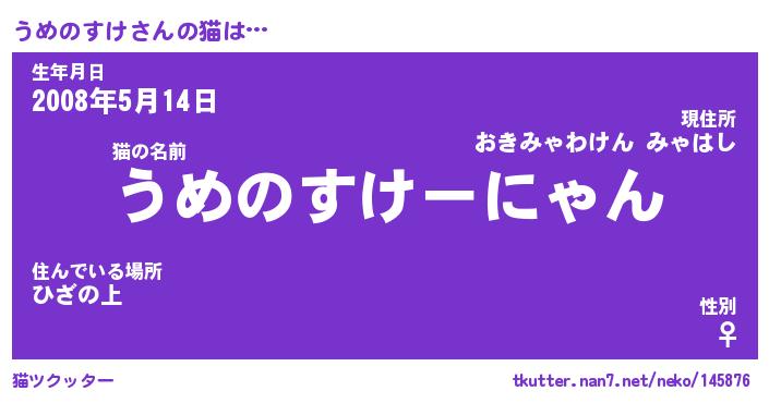 | ファンタジー風あだ名 | 『ウメフェル』『エターナルウメノスケー』 |