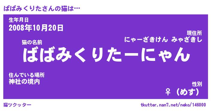 | 生年月日? …「くろねこ」 | 8月01日 10:16 |