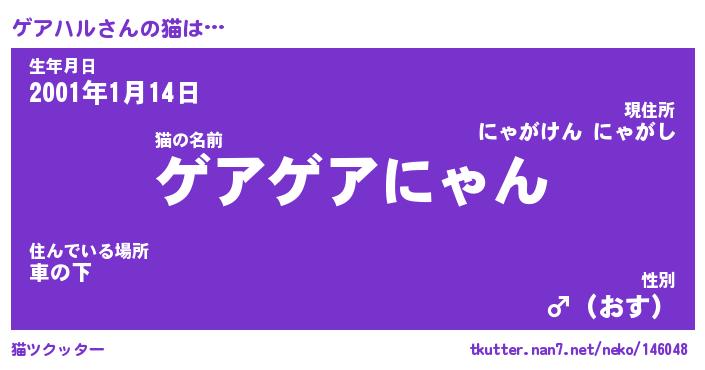 | ポケモン風あだ名 | 『ゲアチュウ』『ゲアハダネ』 |