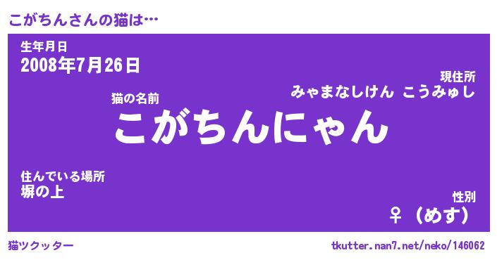 | ポケモン風あだ名 | 『コガチュウ』『コガチダネ』 |