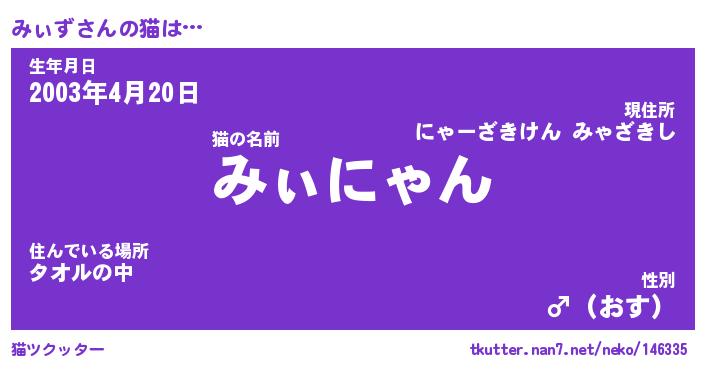 | ポケモン風あだ名 | 『ミィチュウ』『ミィズダネ』 |