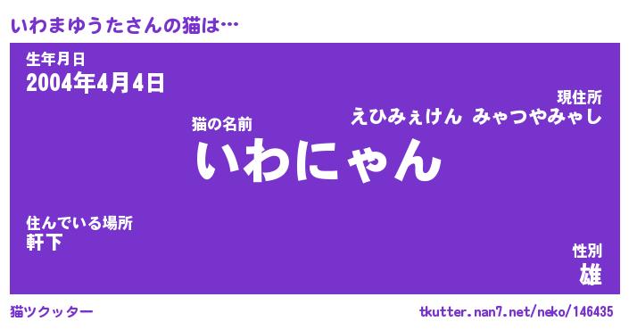| 2回繰り返すあだ名 | 『いわいわ』『いいわわ』『あんあん』 |