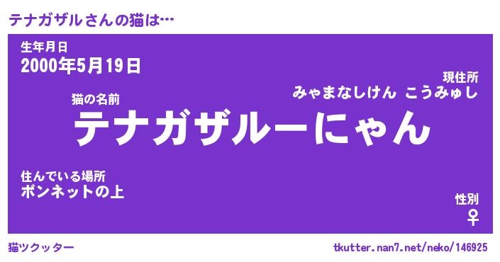 | ポケモン風あだ名 | 『テナチュウ』『テナガダネ』 |
