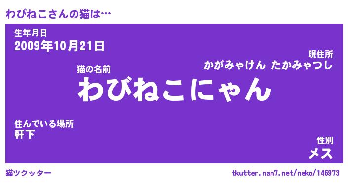 | ファンタジー風あだ名 | 『ワビフェル』『エターナルワビネコー』 |