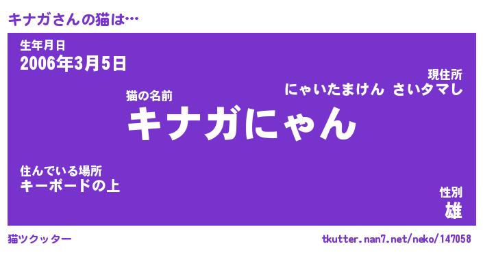 | ファンタジー風あだ名 | 『キナフェル』『エターナルキナガー』 |