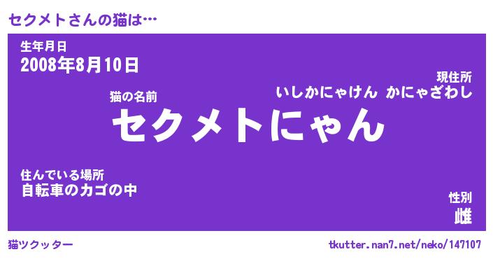 | 意味不明あだ名 | 『ペロリンセクメト』『永久保存セクメト』 |