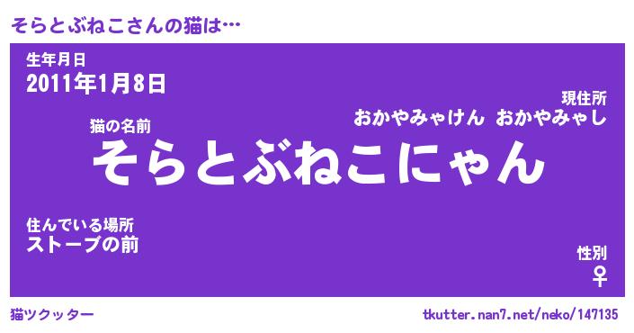 | 肩書あだ名 | 『そらとぶねこCEO』『そらとぶねこ班長』 |