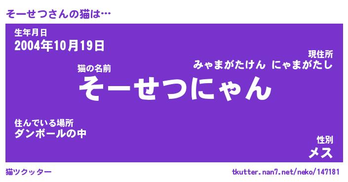 | 生年月日? …「くろねこ」 | 8月01日 10:16 |