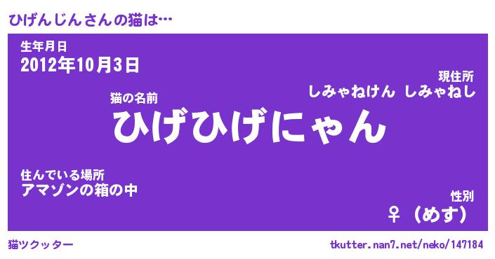 | ポケモン風あだ名 | 『ヒゲチュウ』『ヒゲンダネ』 |