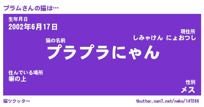 | ヘコむあだ名 | 『プラにゅー』『つくし』『プラお』 |