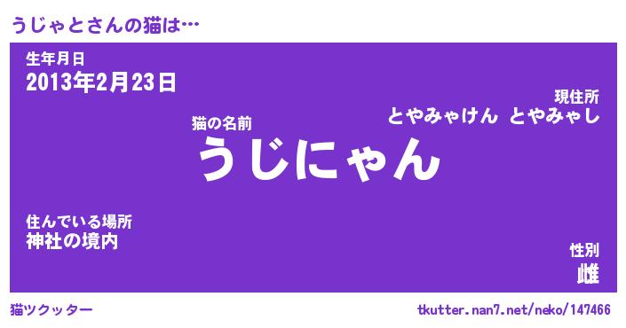 | 意味不明あだ名 | 『ペロリンうじゃと』『永久保存うじゃと』 |