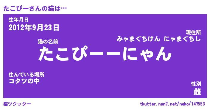 | 意味不明あだ名 | 『ペロリンたこぴー』『永久保存たこぴー』 |