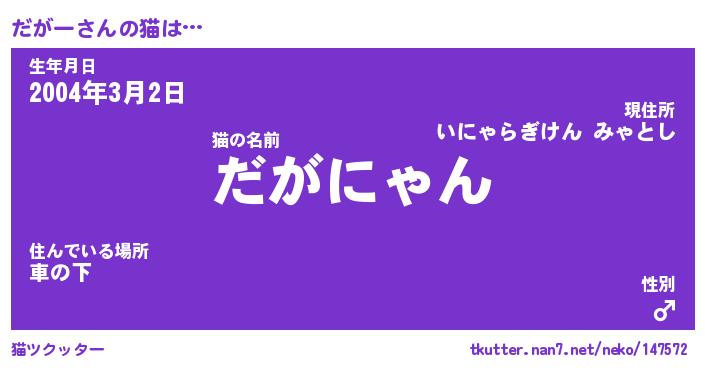 | 男性向けラノベタイトル風あだ名 | 『だがーの憂鬱』 |