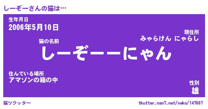 | 意味不明あだ名 | 『ペロリンしーぞー』『永久保存しーぞー』 |