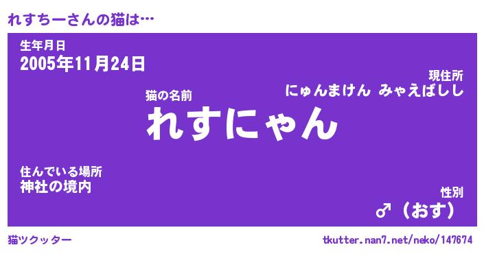 | ヘコむあだ名 | 『れすにゅー』『豆乳』『れすっちょ』 |