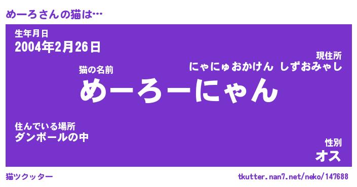 | 生年月日? …「くろねこ」 | 8月01日 10:16 |