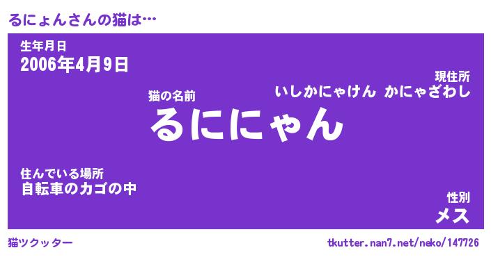 | 意味不明あだ名 | 『ペロリンるにょん』『永久保存るにょん』 |