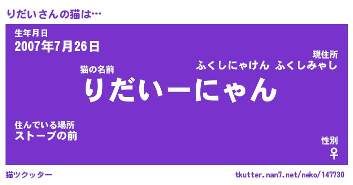 | 生年月日? …「くろねこ」 | 8月01日 10:16 |