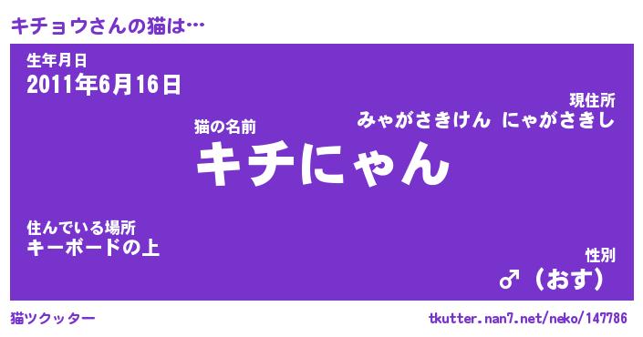 | 2回繰り返すあだ名 | 『キチキチ』『キキチチ』『にぎにぎ』 |