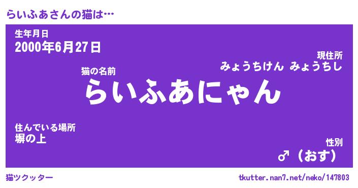 | 生年月日? …「くろねこ」 | 8月01日 10:16 |