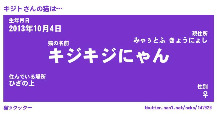 | ファンタジー風あだ名 | 『キジフェル』『エターナルキジトー』 |