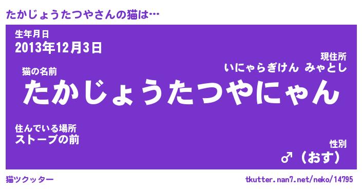 | ツイッター | たかじょうたつやさんのツイッターID『kikurage_nyan』 |