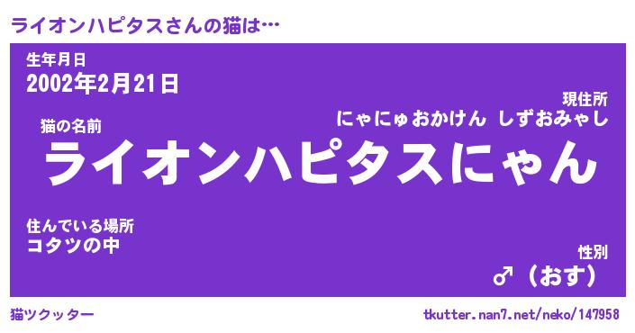 | 生年月日? …「くろねこ」 | 8月01日 10:16 |