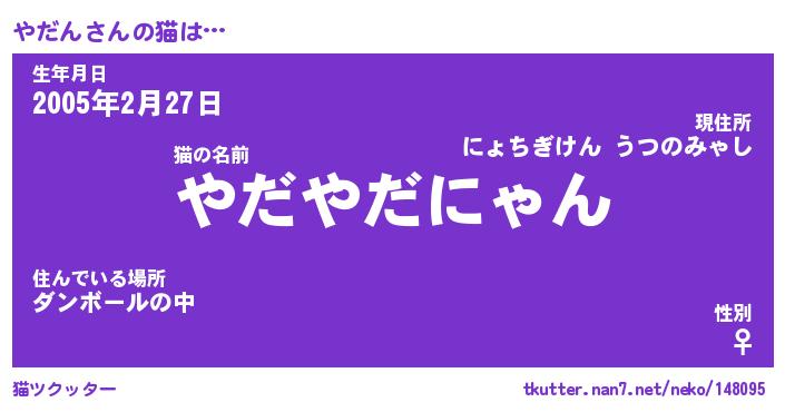 | ポケモン風あだ名 | 『ヤダチュウ』『ヤダンダネ』 |