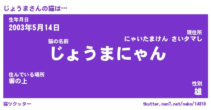 | 意味不明あだ名 | 『ペロリンじょうま』『永久保存じょうま』 |