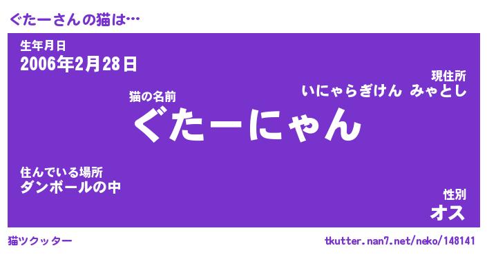 | 男性向けラノベタイトル風あだ名 | 『ぐたーの憂鬱』 |