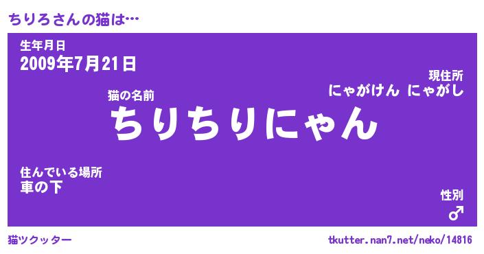 ツイッター ちりろさんのツイッターID『namakemono_kun