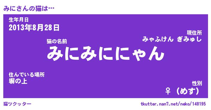 | 意味不明あだ名 | 『ペロリンみに』『みにフォーエバー』 |