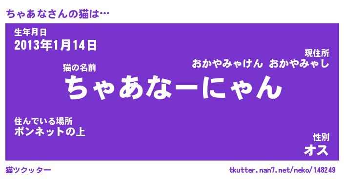 | 2回繰り返すあだ名 | 『ちゃちゃ』『ちちゃゃ』『にたにた』 |