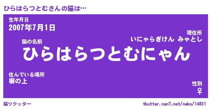 | 生年月日? …「くろねこ」 | 8月01日 10:16 |