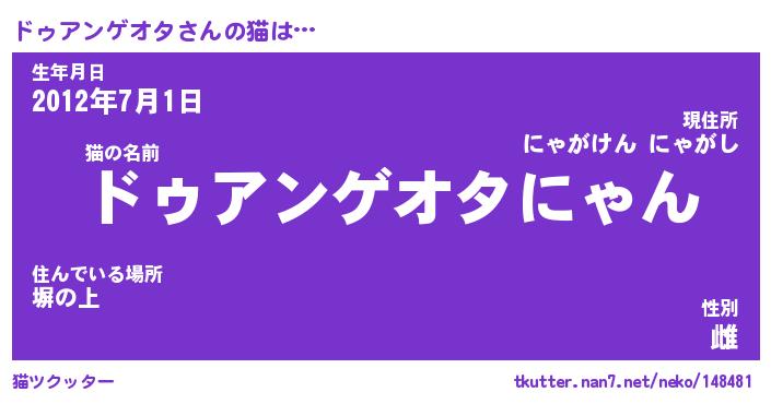 | 女子向けラノベタイトル風あだ名 | 『(仮)ドゥアンゲオタのやんごとなき事情』 |