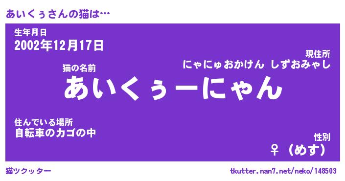 | 意味不明あだ名 | 『ペロリンあいくぅ』『永久保存あいくぅ』 |