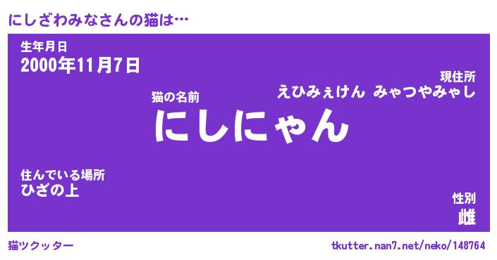 | ポケモン風あだ名 | 『ニシチュウ』『ニシザダネ』 |