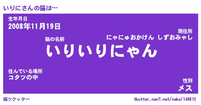 | 意味不明あだ名 | 『ペロリンいりに』『いりにフォーエバー』 |