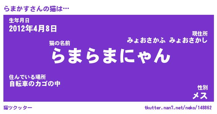 | ヘコむあだ名 | 『らまもー』『レバニラ』『らまっ子』 |