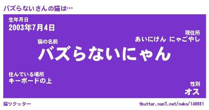 | ファンタジー風あだ名 | 『バズフェル』『エターナルバズラナイー』 |